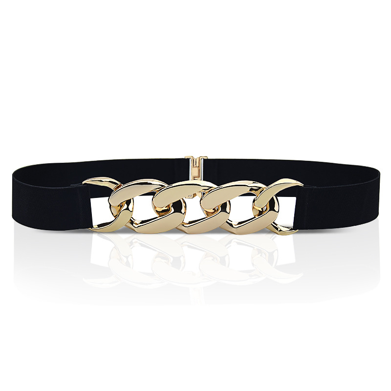 Γυναικεία ελαστική ζώνη με χρυσή αλυσίδα. Κομψή γυναικεία ζώνη σε μαύρο χρώμα.