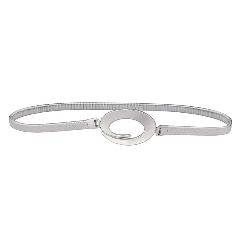 Γυναικεία μεταλλική ζώνη, ελαστική σε ασημί χρώμα.