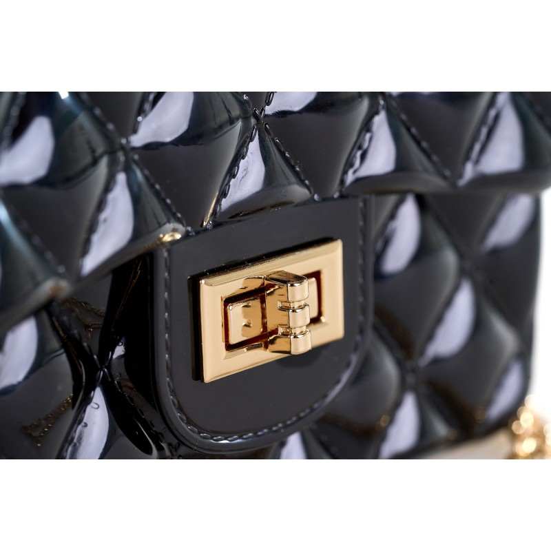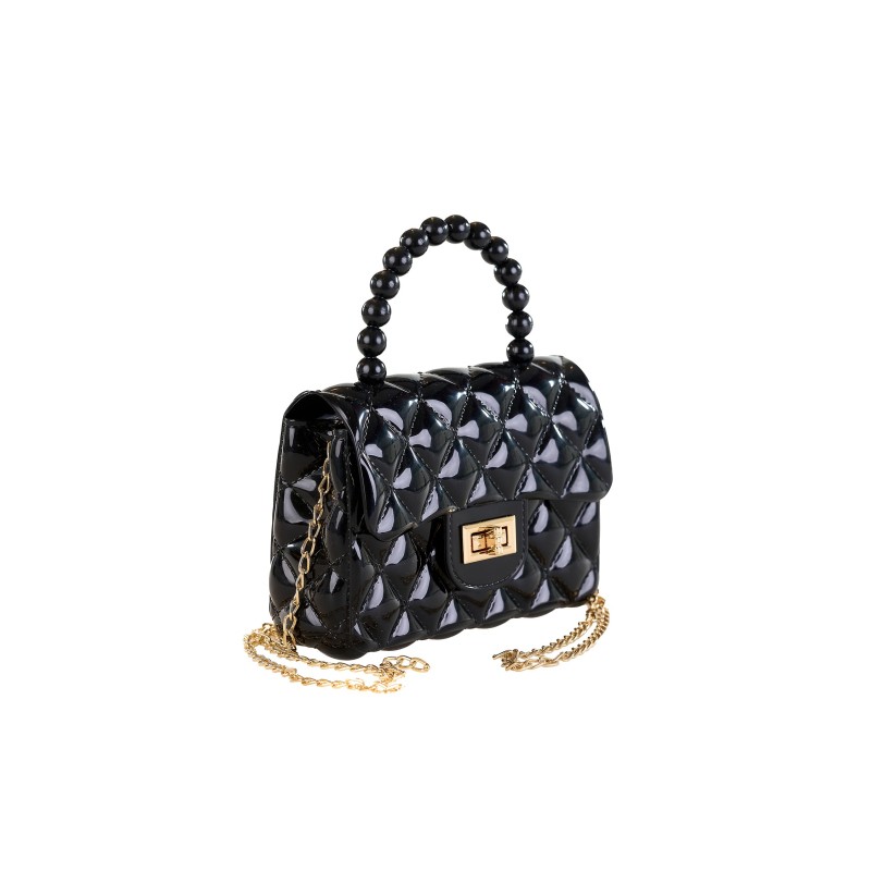 Γυναικεία μίνι τσάντα χειρός με χρυσή αλυσίδα ώμου. Μια κομψή και statement επιλογή για κάθε σου έξοδο! Αυτή η mini τσάντα Pierre Cardin συνδυάζει μαύρη γυαλιστερή υφή με καπιτονέ σχέδιο και εντυπωσιακή χρυσή αγκράφα. Διαθέτει διακοσμητικό χερούλι και αλυσίδα ώμου για να τη φοράς και χιαστί.