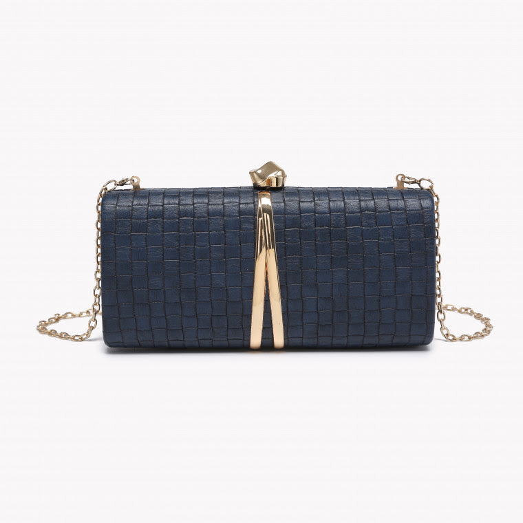 Γυναικεία τσάντα ώμου Clutch σε μπλε σκούρο χρώμα. Γυναικείο βραδινό τσαντάκι με αποσπώμενη αλυσίδα ιδιαίτερο κούμπωμα και χρυσές λεπτομέρειες.