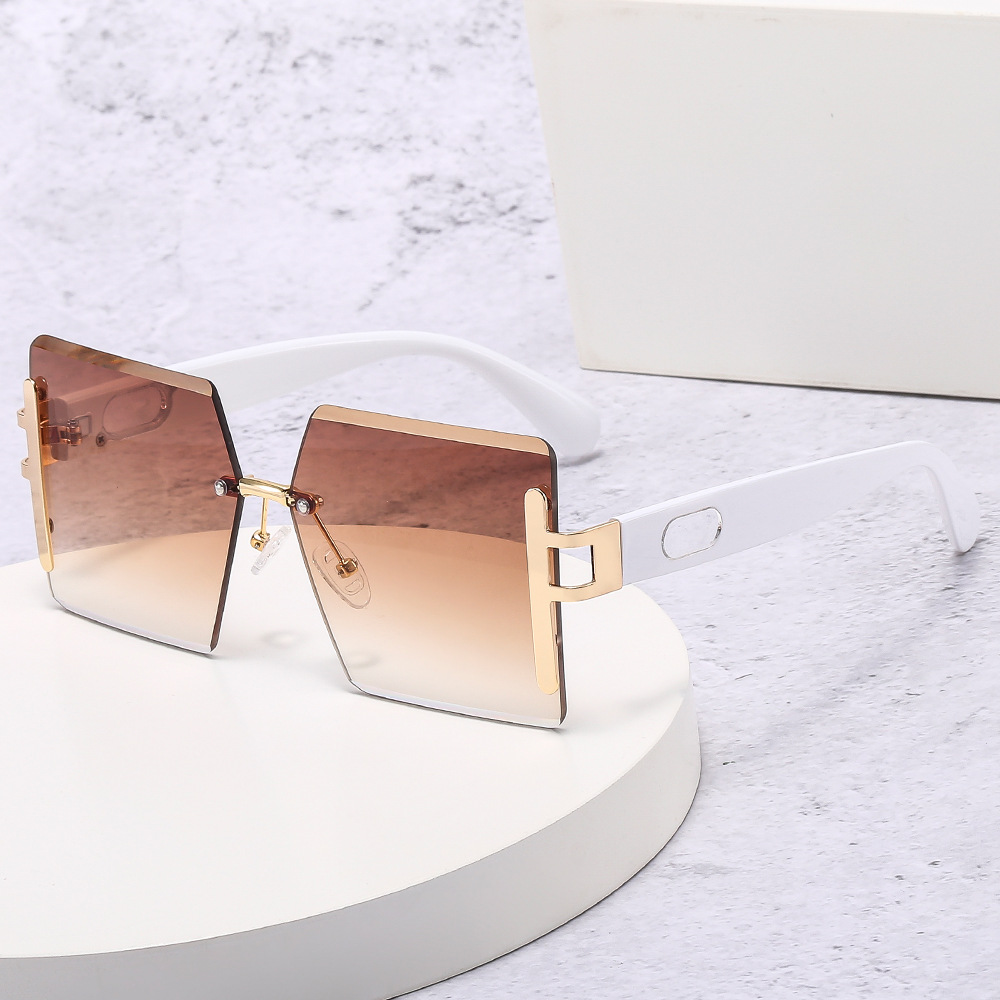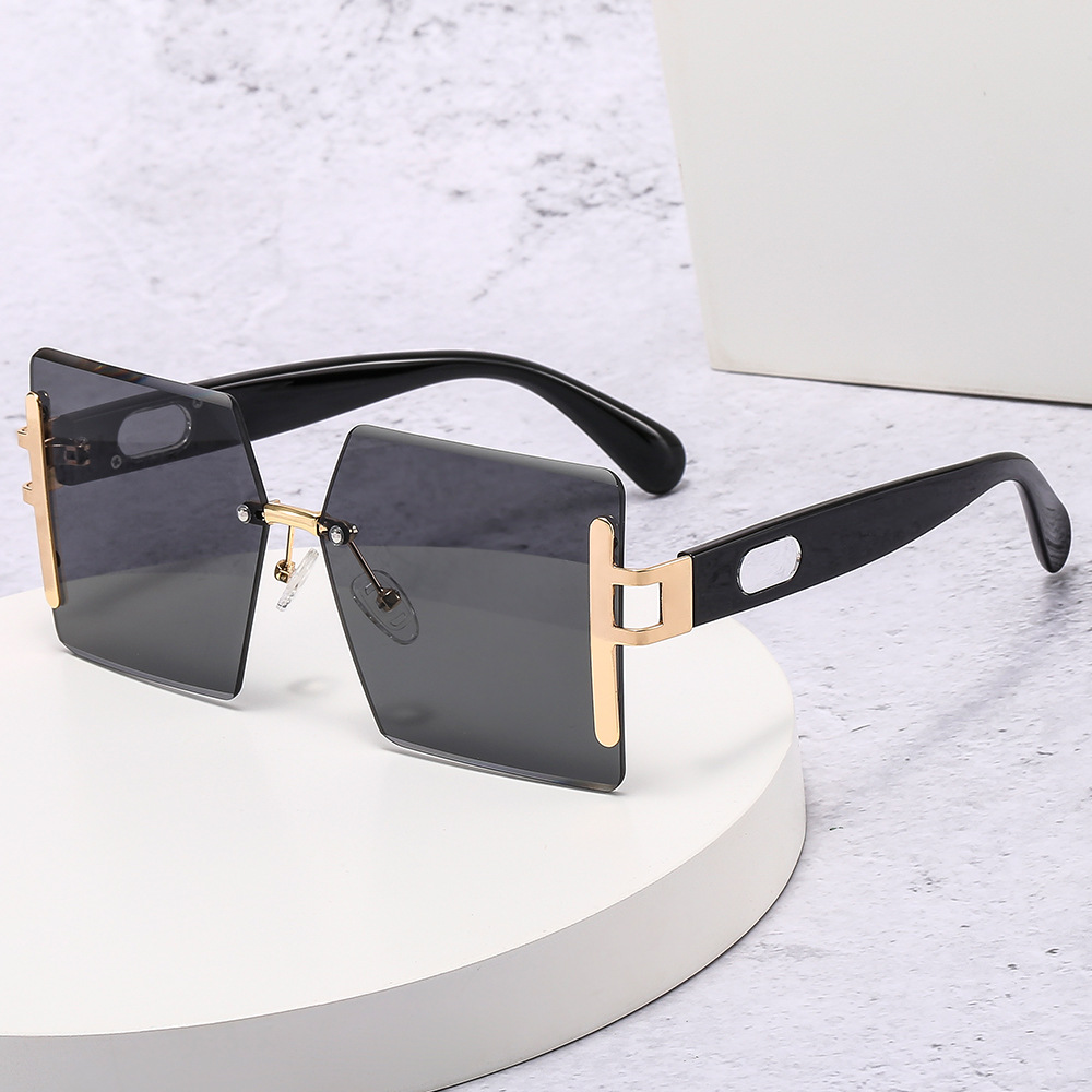 Γυναικεία γυαλιά ηλίου τετράγωνα Rimless μεγάλα. Γυναικεία τετράγωνα γυαλιά ηλίου σε μαύρο και λευκό χρώμα σκελετού.