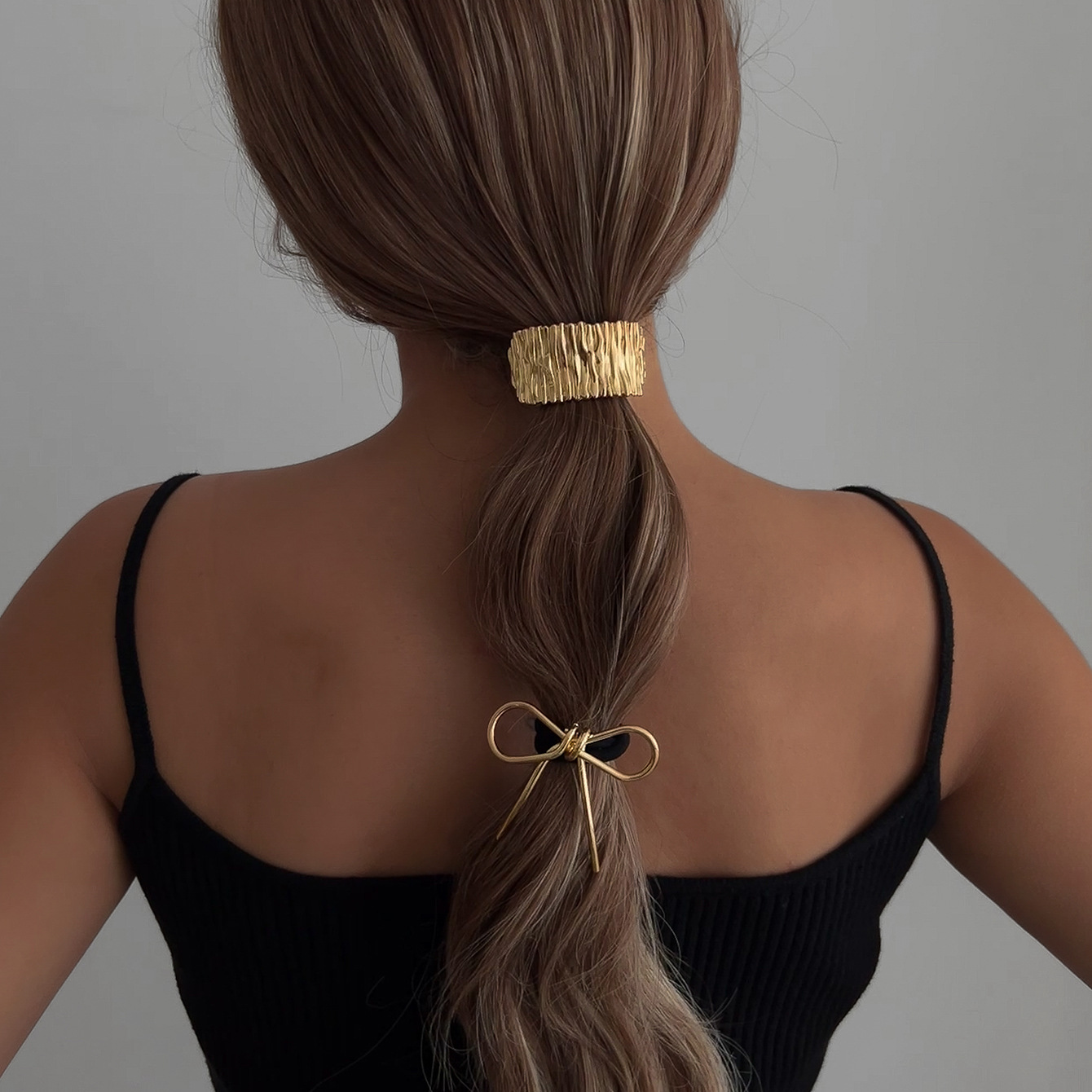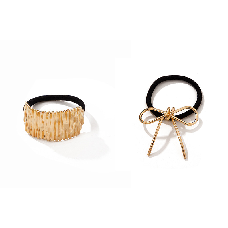 Σετ 2 Λαστιχάκια Μαλλιών Μεταλλικά φιόγκος και ανάγλυφο σε χρυσό χρώμα.