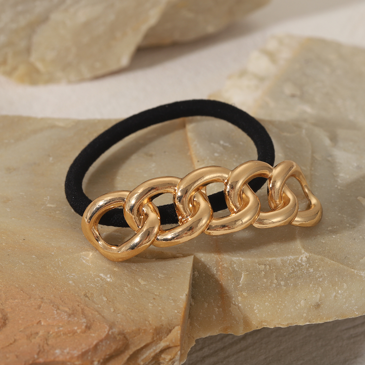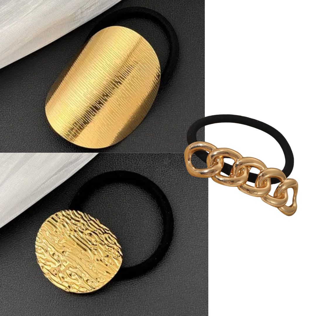 Σετ 3 λαστιχάκια μαλλιών μεταλλικά Oval. Αξεσουάρ μαλλιών οβάλ πλακέ ανάγλυφα και αλυσίδα σε χρυσό χρώμα.