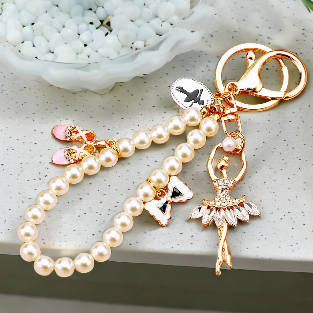 Μπρελόκ κλειδιών τσάντας σχέδιο μπαλαρίνα με πέρλες, κορδέλα και παπούτσια. Key Chain για να στολίσεις τα κλειδιά η την τσάντα σου.