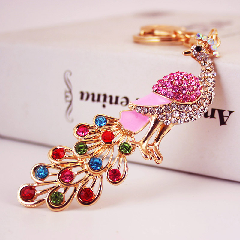 Μπρελόκ κλειδιών τσάντας σχέδιο Παγώνι με Στρας ροζ Keychain για να στολίσεις τα κλειδιά η την τσάντα σου.