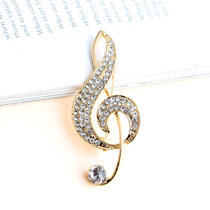 Γυναικεία καρφίτσα νότα με στρας σε ροζ χρυσό.