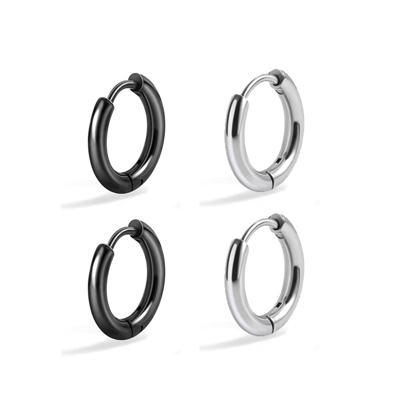 Ανδρικά σκουλαρίκια κρίκοι απλοί 2 ζευγάρια σε ασημί και μαύρο από ανοξείδωτο ατσάλι.