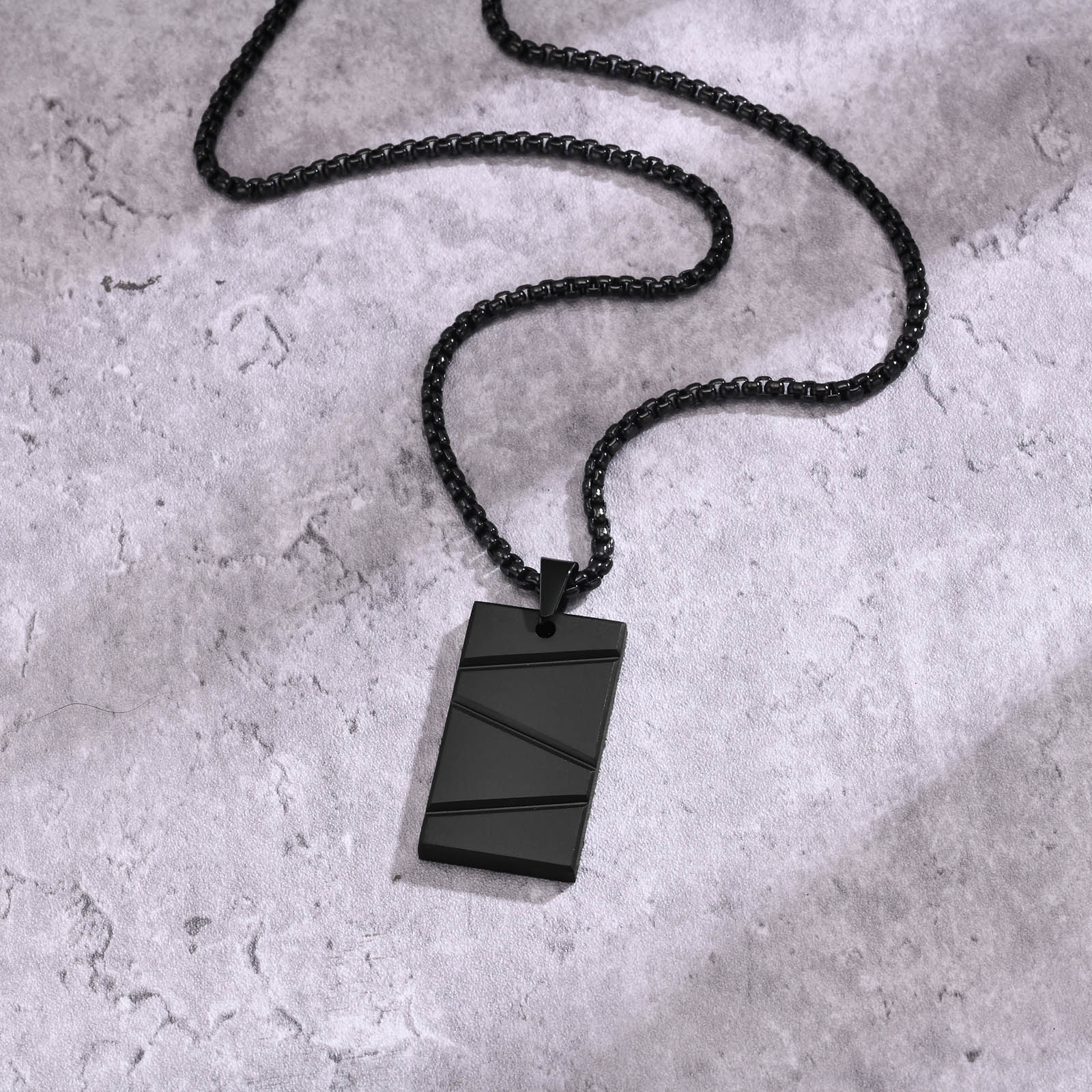 Ανδρικό μενταγιόν ταυτότητα σε γεωμετρικό σχήμα. Ανδρικό κολιέ αλυσίδα από ανοξείδωτο ατσάλι σε μαύρο χρώμα.