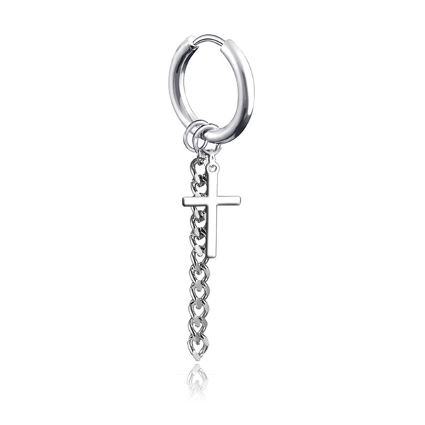 Ανδρικό σκουλαρίκι σταυρός με αλυσίδα από ανοξείδωτο ατσάλι σε μαύρο και ασημί χρώμα.