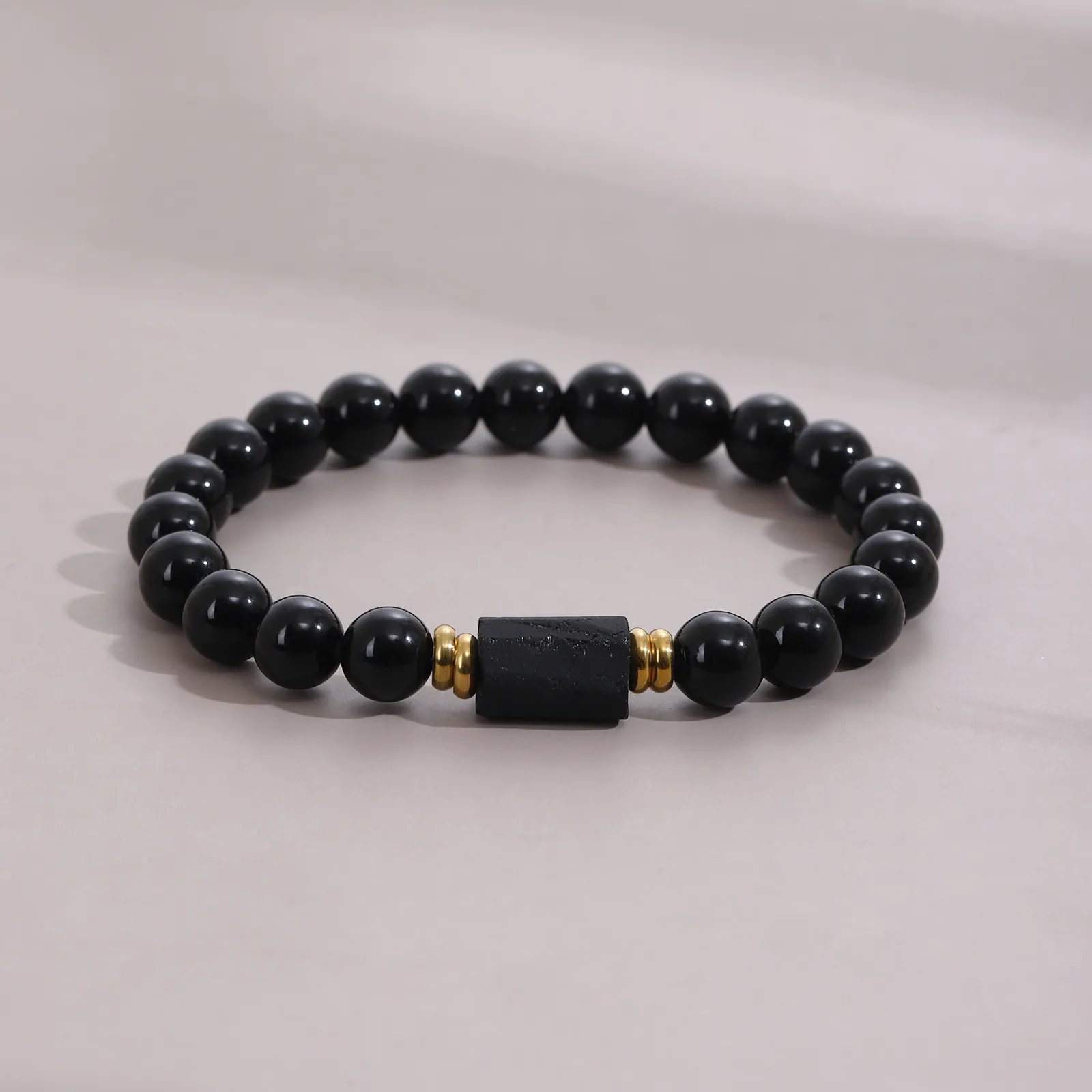 Ανδρικό βραχιόλι Turmalline με φυσική πέτρα και χάντρες σε μαύρο χρώμα.