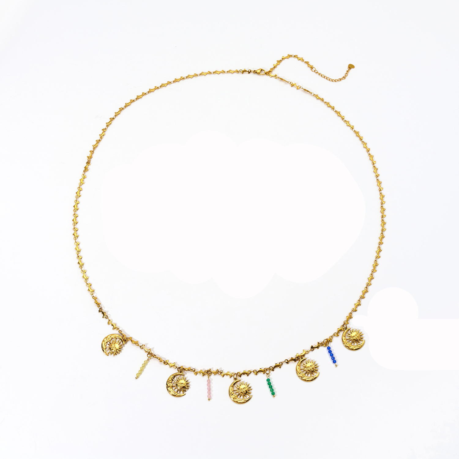 Γυναικεία Αλυσίδα Μέσης Κοιλιάς Moon and Sun από Ανοξείδωτο Ατσάλι με χρωματιστές χάντρες.