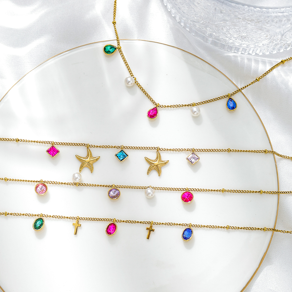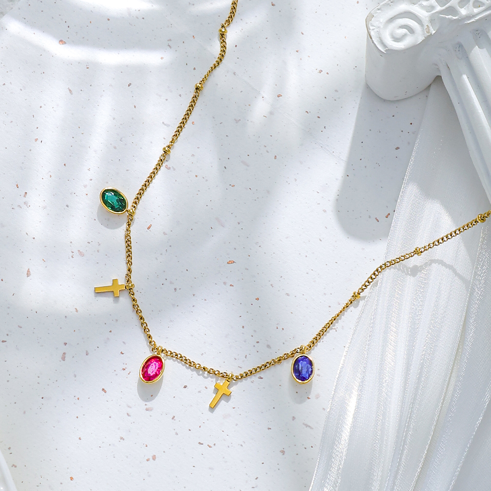 Γυναικεία αλυσίδα ποδιού Cross από ανοξείδωτο ατσάλι επιχρυσωμένη 18K με πολύχρωμα zircon και σταυρό.