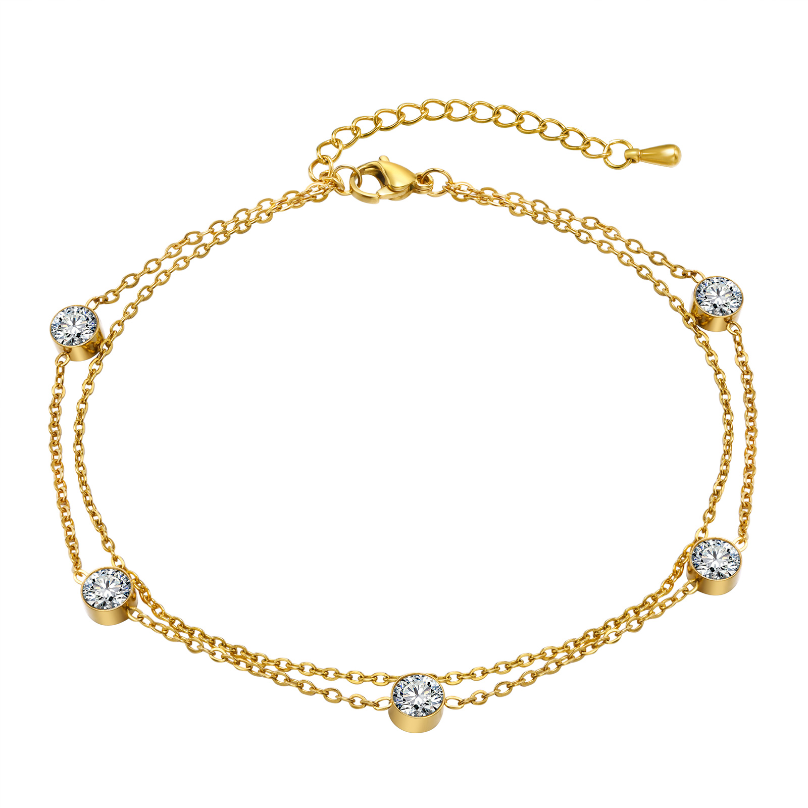 Γυναικεία διπλή αλυσίδα ποδιού Double Chain Zircon από ανοξείδωτο ατσάλι επιχρυσωμένη 18K.