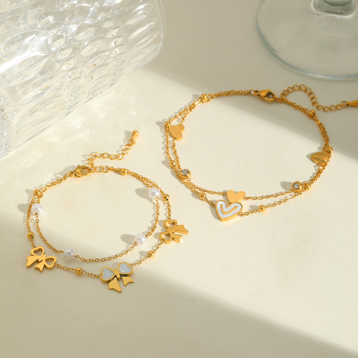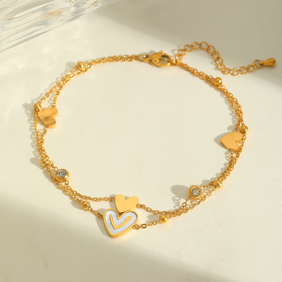 Γυναικεία διπλή αλυσίδα ποδιού Heart από ανοξείδωτο ατσάλι επιχρυσωμένη 18K με Zircon.