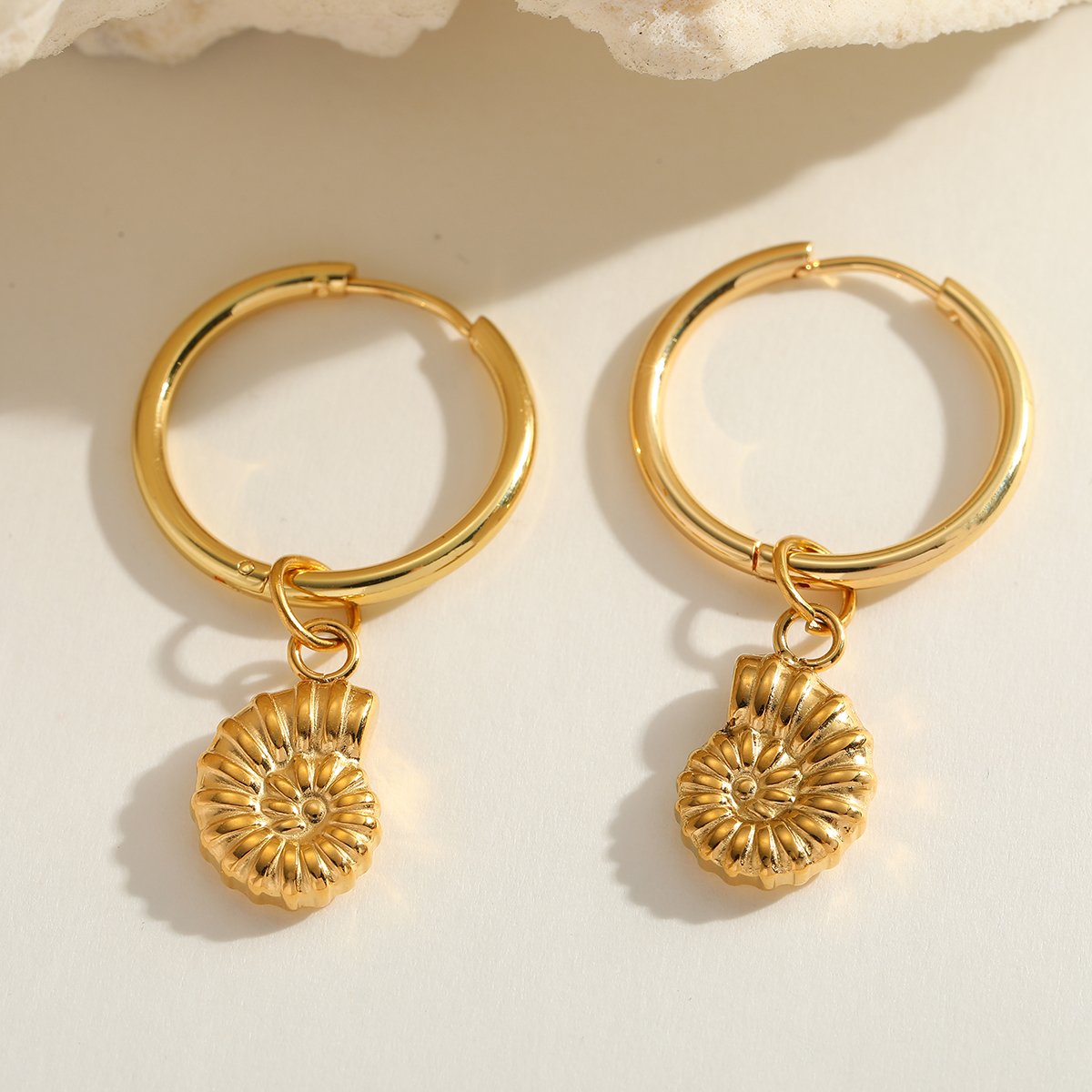 Γυναικεία σκουλαρίκια κρίκοι Conch από ανοξείδωτο ατσάλι επιχρυσωμένα 18Κ. Καλοκαιρινά σκουλαρίκια κρίκοι κοχύλι σε χρυσό.