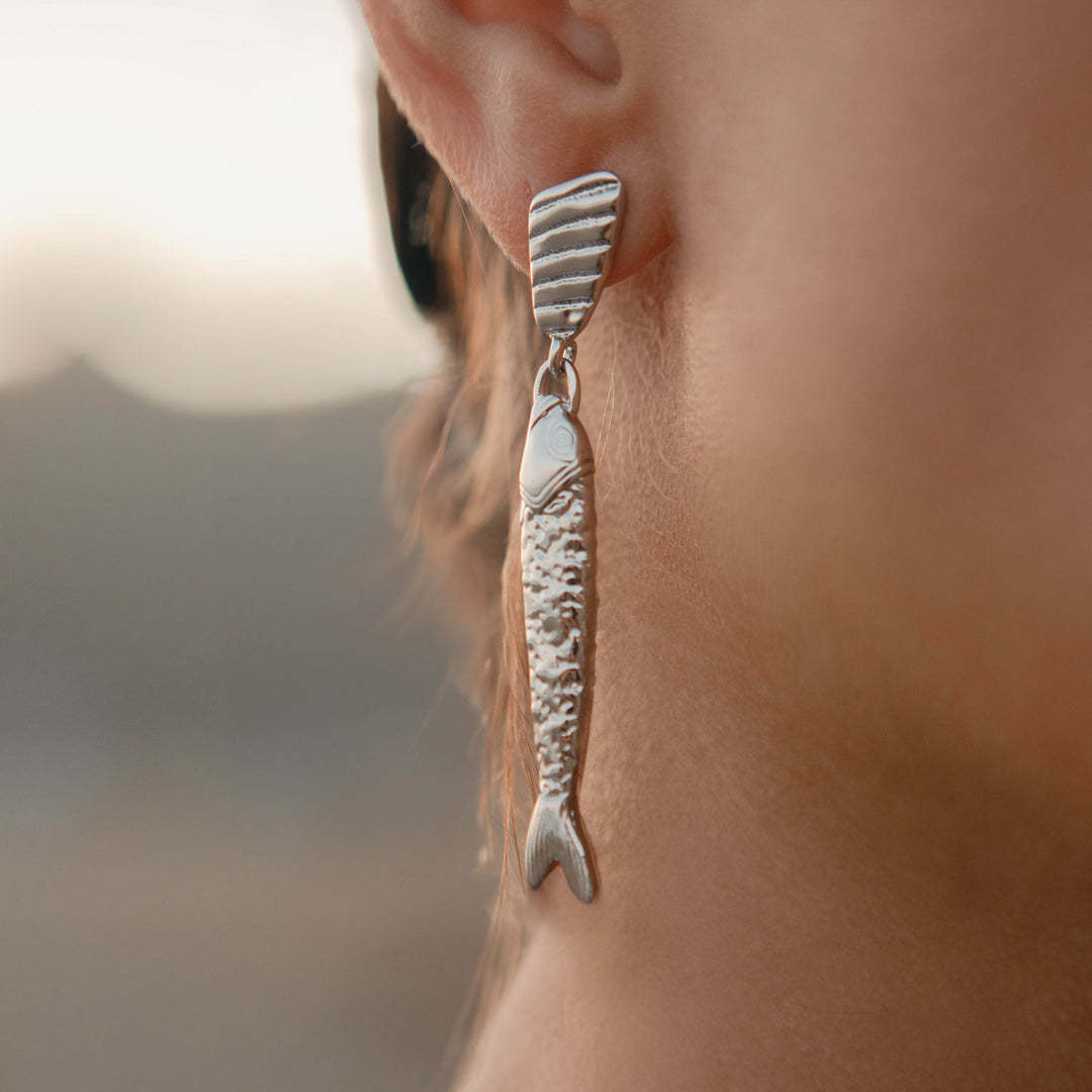 Γυναικεία σκουλαρίκια κρεμαστά Mix Metal Fish από ανοξείδωτο ατσάλι. Καλοκαιρινά σκουλαρίκια χρυσό και ασημί ψάρι.
