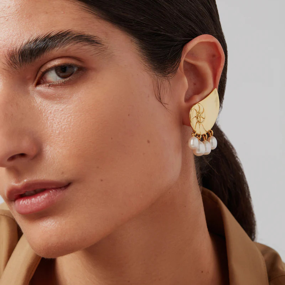 Γυναικεία Σκουλαρίκια Spiral Κοχύλι από Ανοξείδωτο Ατσάλι με Πέρλες