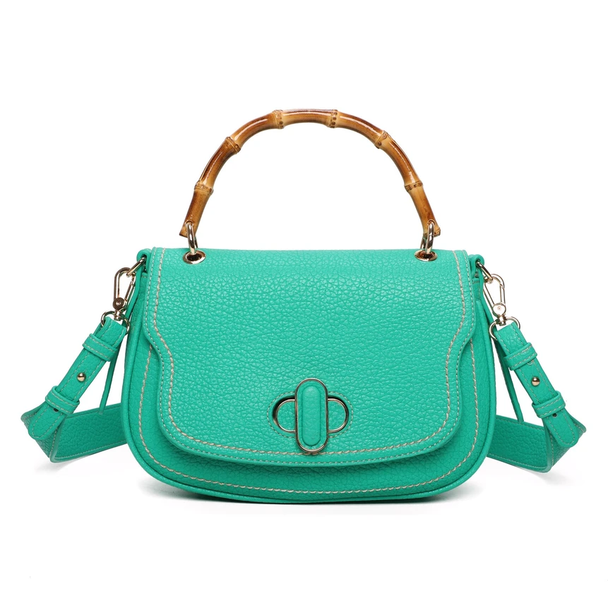 Γυναικεία τσάντα ώμου Mint με Bamboo χερούλι σε πράσινο χρώμα μέντας με αποσπώμενο λουράκι.