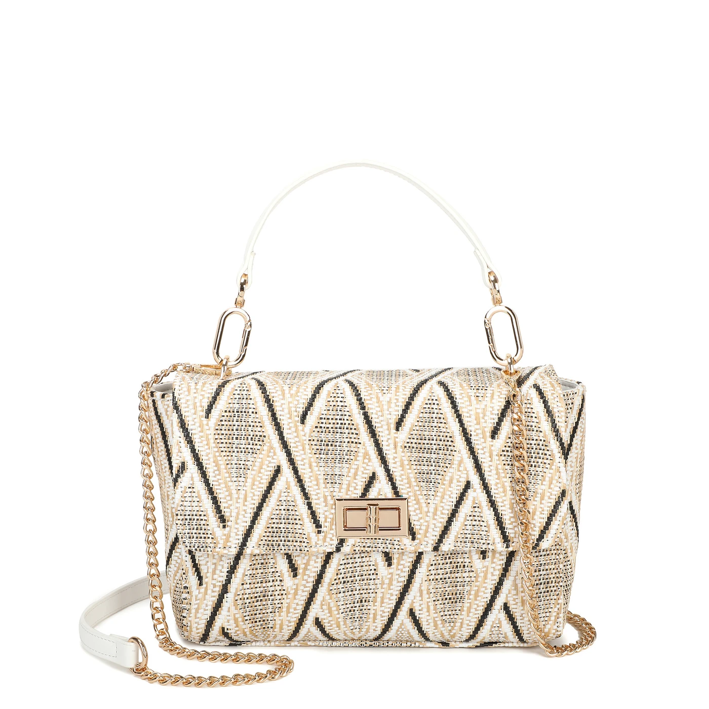Φέρε καλοκαιρινό αέρα στις εμφανίσεις σου με αυτή την κομψή ψάθινη τσάντα χειρός και ώμου σε φυσικές αποχρώσεις. Το γεωμετρικό σχέδιο και οι χρυσές λεπτομέρειες την κάνουν να ξεχωρίζει, ενώ το λουράκι σου δίνει ευελιξία και άνεση.