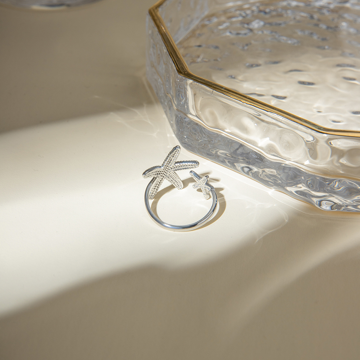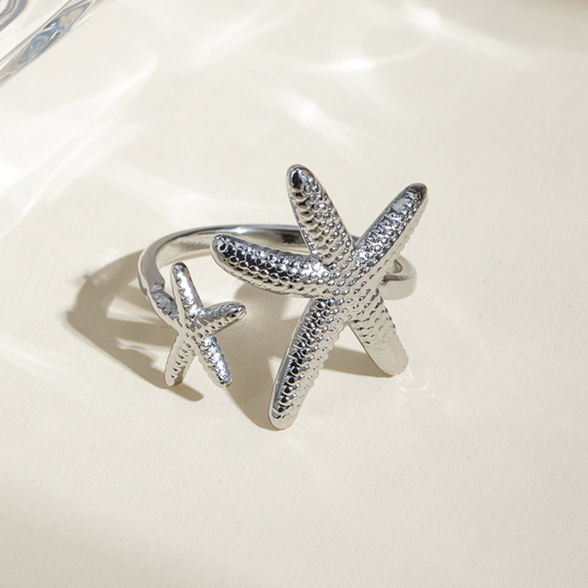 Γυναικείο προσαρμόσιμο δαχτυλίδι starfish από ανοξείδωτο ατσάλι σε σχήμα αστερία. Γυναικείο δαχτυλίδι ανοιχτού τύπου ασημί.