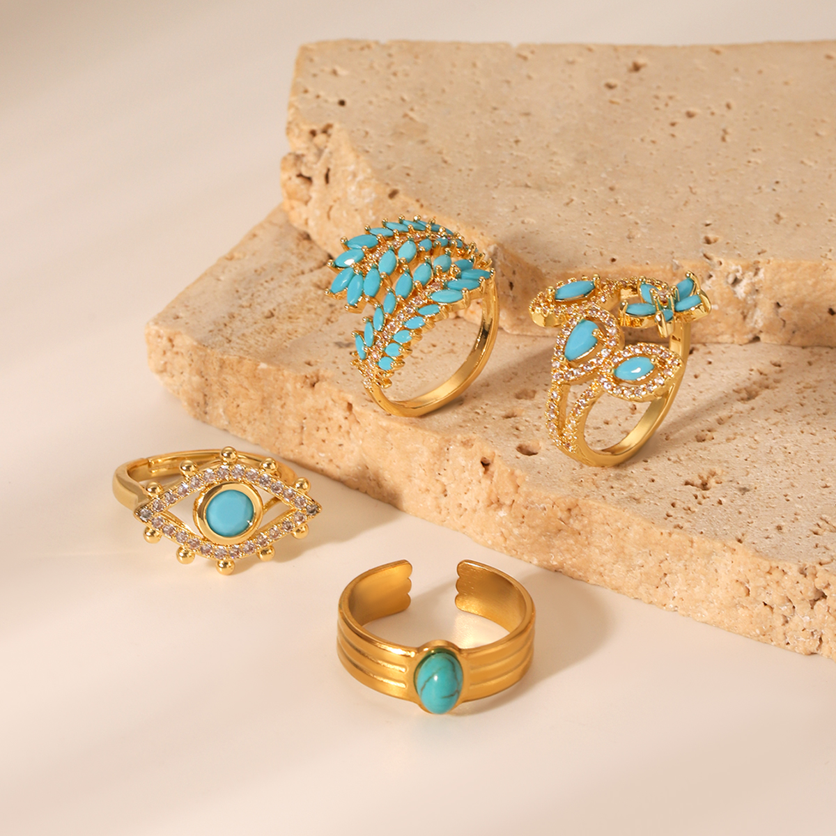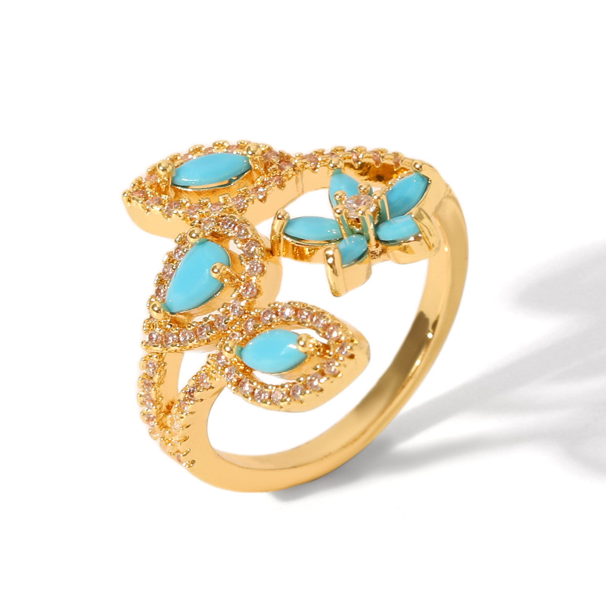 Γυναικείο δαχτυλίδι Turquoise Flower από ανοξείδωτο ατσάλι επιχρυσωμένο 18K με Zircon. Καλοκαιρινό δαχτυλίδι με τιρκουάζ λουλούδι και ζιρκόνιά.