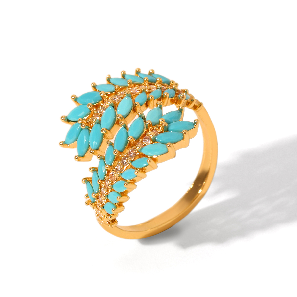Γυναικείο Δαχτυλίδι Turquoise Leaves από Ανοξείδωτο Ατσάλι Επιχρυσωμένο 18K με Zircon