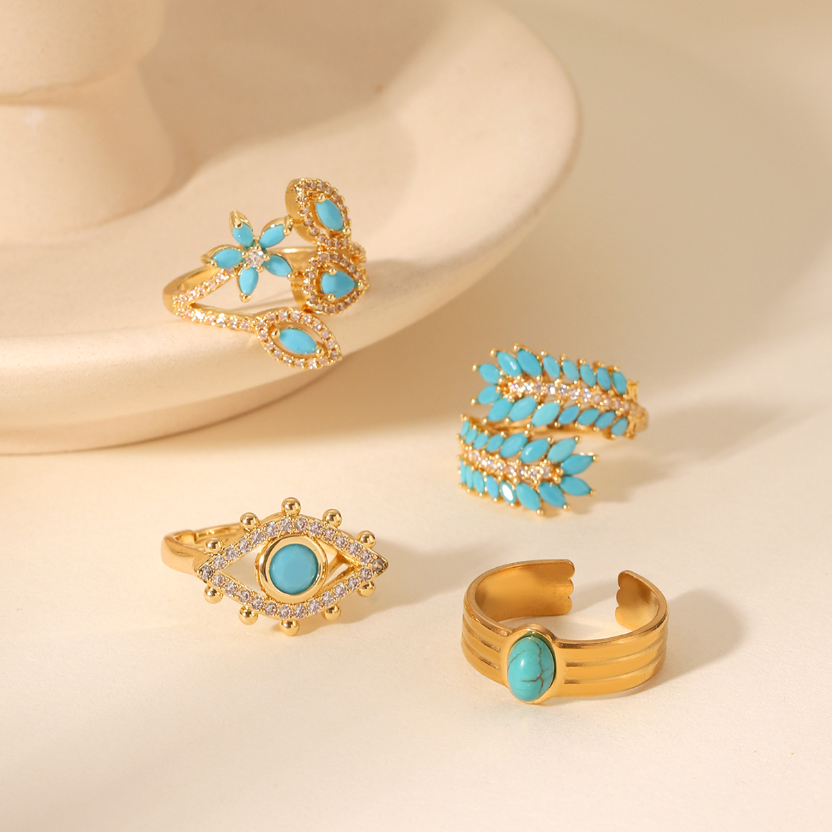 Γυναικείο δαχτυλίδι Turquoise Leaves από ανοξείδωτο ατσάλι επιχρυσωμένο 18K με Zircon. Καλοκαιρινό δαχτυλίδι με τιρκουάζ φύλλα και ζιρκόνιά.