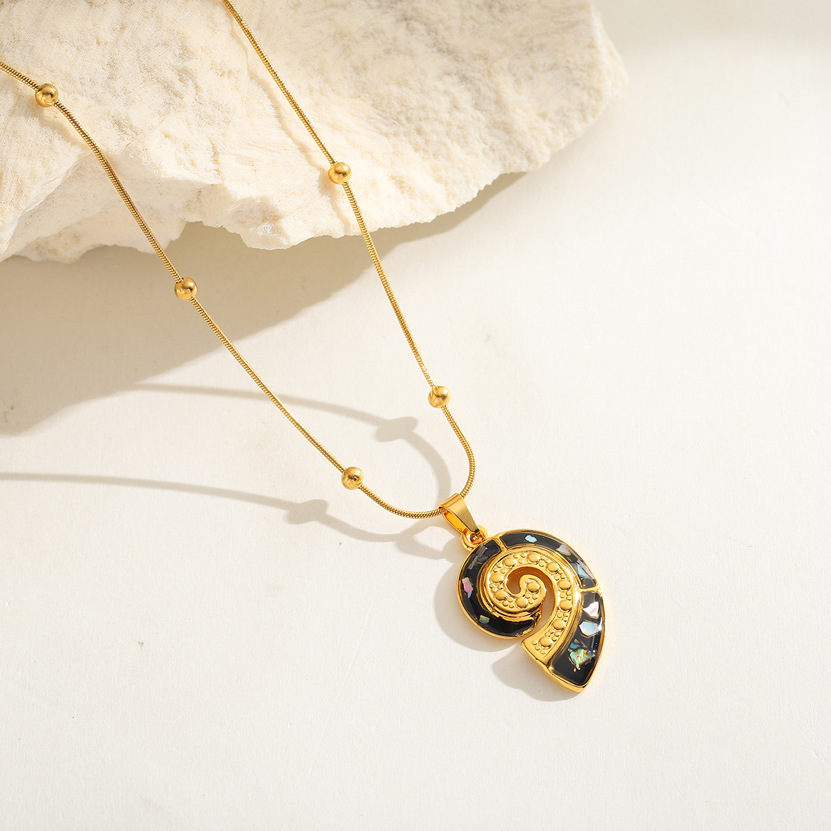 Γυναικείο κολιέ Black Conch από ανοξείδωτο ατσάλι επιχρυσωμένο 18K με μαύρο ιριδίζον σπιράλ κοχύλι.