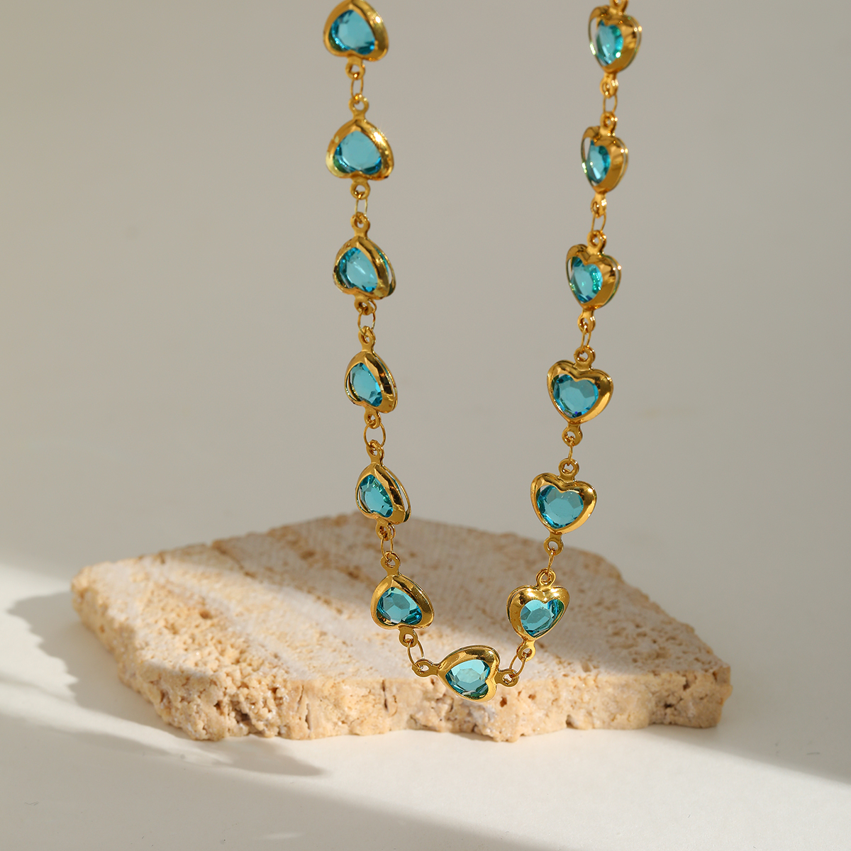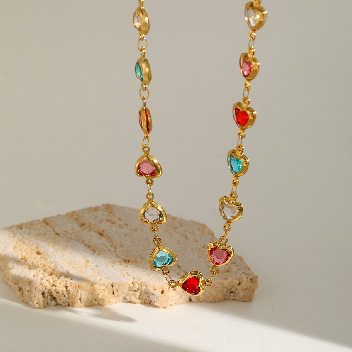 Γυναικείο κολιέ Colorful Hearts από ανοξείδωτο ατσάλι επιχρυσωμένο 18Κ, με καρδιές Zircon σε διάφορα χρώματα, χρυσό.