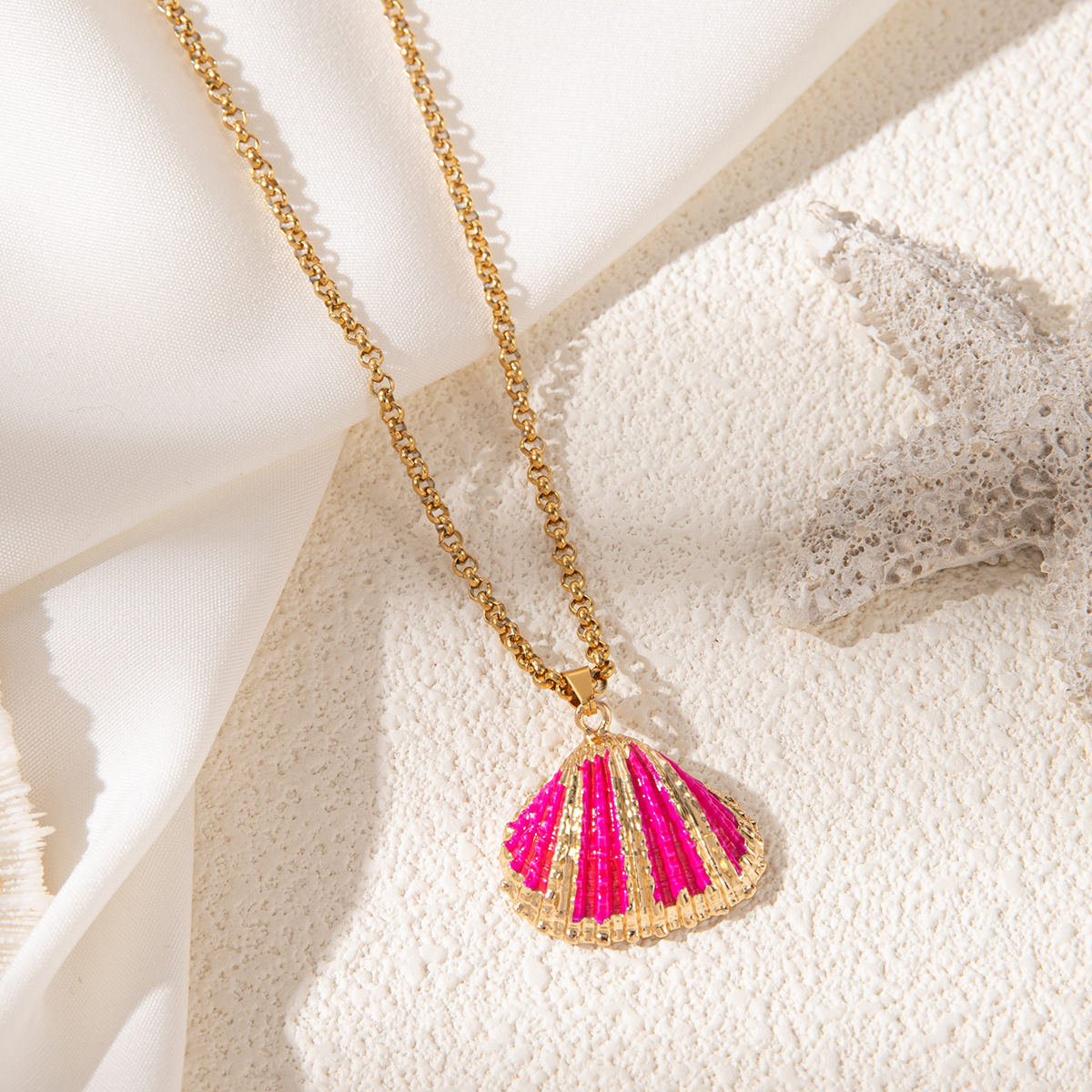Γυναικείο Κολιέ Magenta Gold Seashell από Ανοξείδωτο Ατσάλι Επιχρυσωμένο 18Κ. Καλοκαιρινό κολιέ με φούξια κοχύλι σε χρυσό.