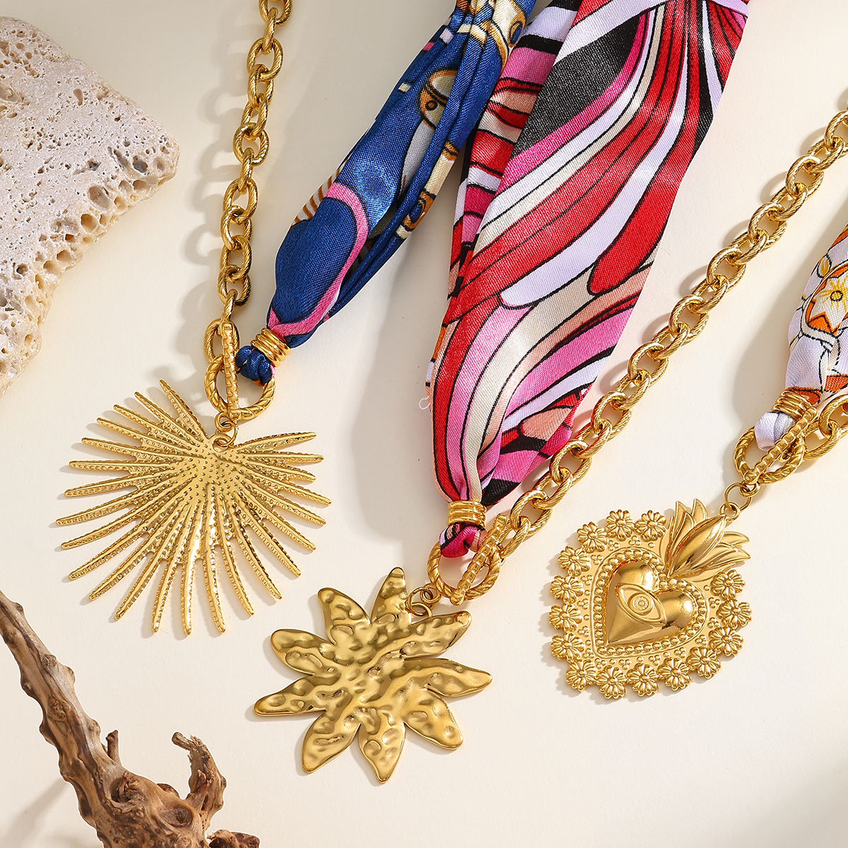 • Γυναικείο Κολιέ Navarino Silk & Gold Scarf Necklace από Ανοξείδωτο Ατσάλι Επιχρυσωμένο 18Κ σε Υφασμάτινο Μαντήλι