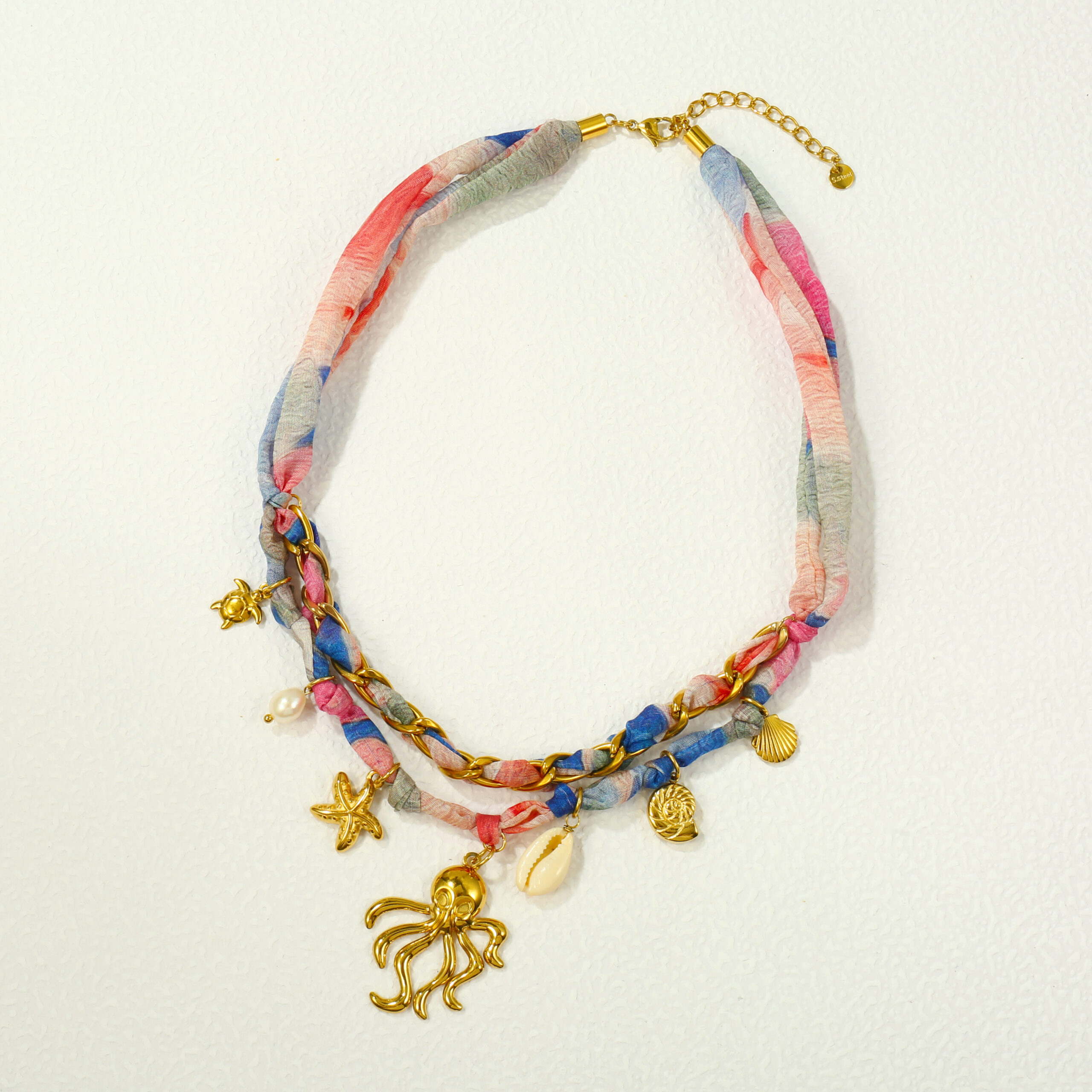 Γυναικείο κολιέ Octopus από Ανοξείδωτο Ατσάλι σε colorful μαντήλι multicharm. Ιδανικό για την παραλία και καλοκαιρινά looks.