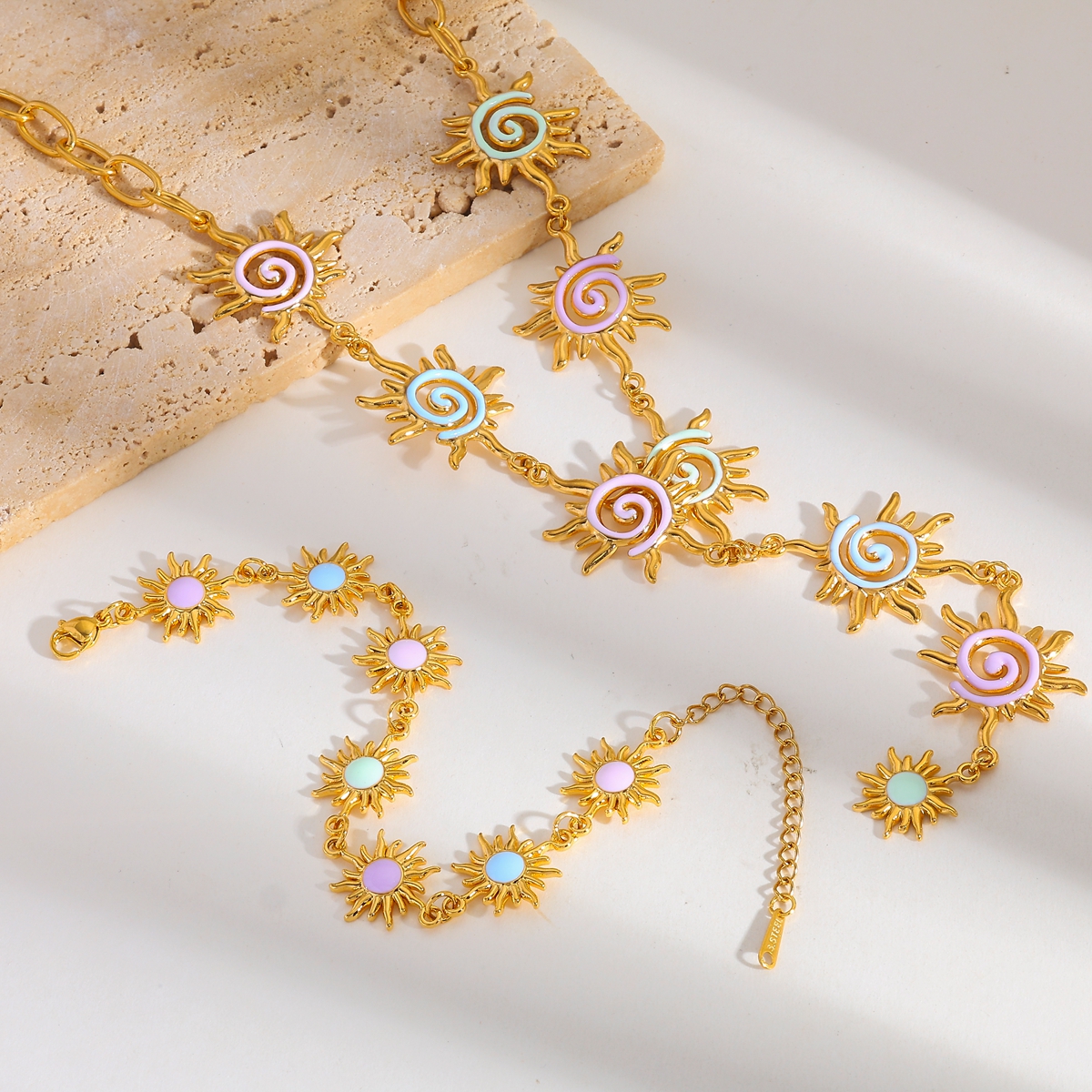 Γυναικείο βραχιόλι Helia Sun Spirit από ανοξείδωτο ατσάλι επιχρυσωμένο 18K, βραχιόλι με ιδιαίτερη σπιράλ αλυσίδα με μικρούς ήλιους.