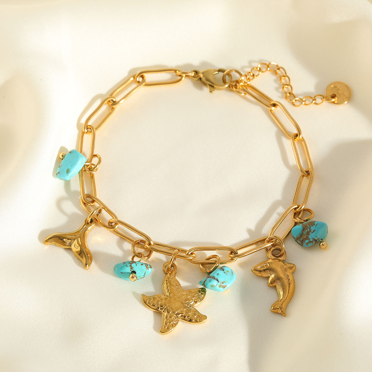 Γυναικείο Βραχιόλι Ocean Turquoise από Ανοξείδωτο Ατσάλι Επιχρυσωμένο 18K Charms