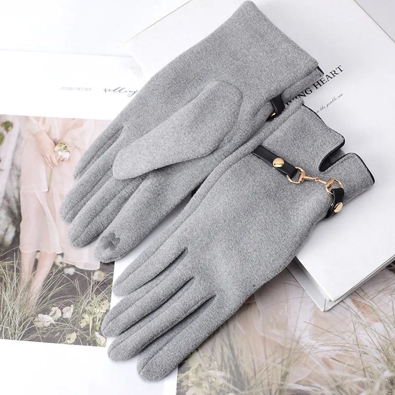 Γυναικεία κομψά γάντια αφής Fleece σε τρία χρώματα με μεταλλική διακοσμητική αλυσίδα.