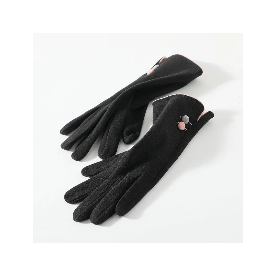 • Γυναικεία Γάντια Velvet Ζεστά με Κουμπί Μαύρα