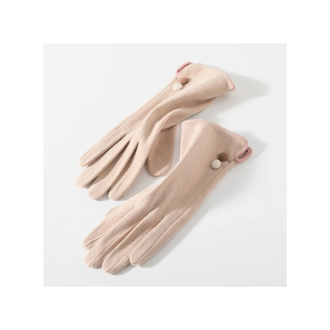 • Γυναικεία Γάντια Velvet Ζεστά με Κουμπί Μπεζ