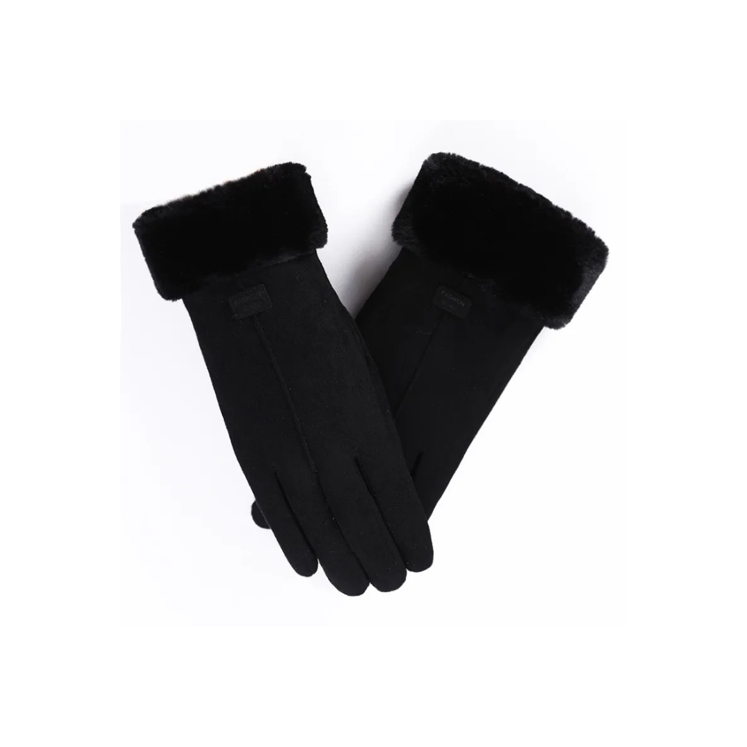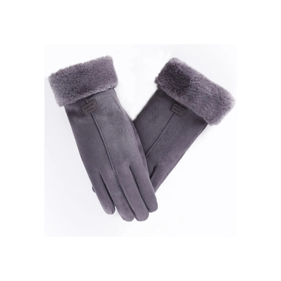 Γυναικεία σουέτ γάντια ζεστά χειμερινά με εσωτερική επένδυση. Γυναικεία γάντια με λεπτομέρεια για οθόνη αφής.