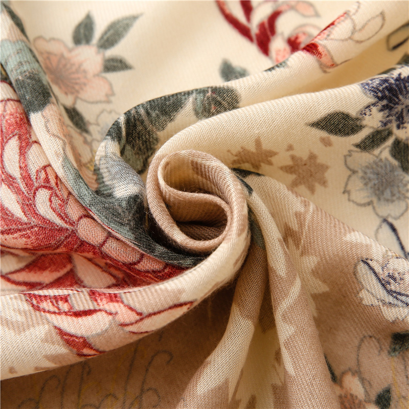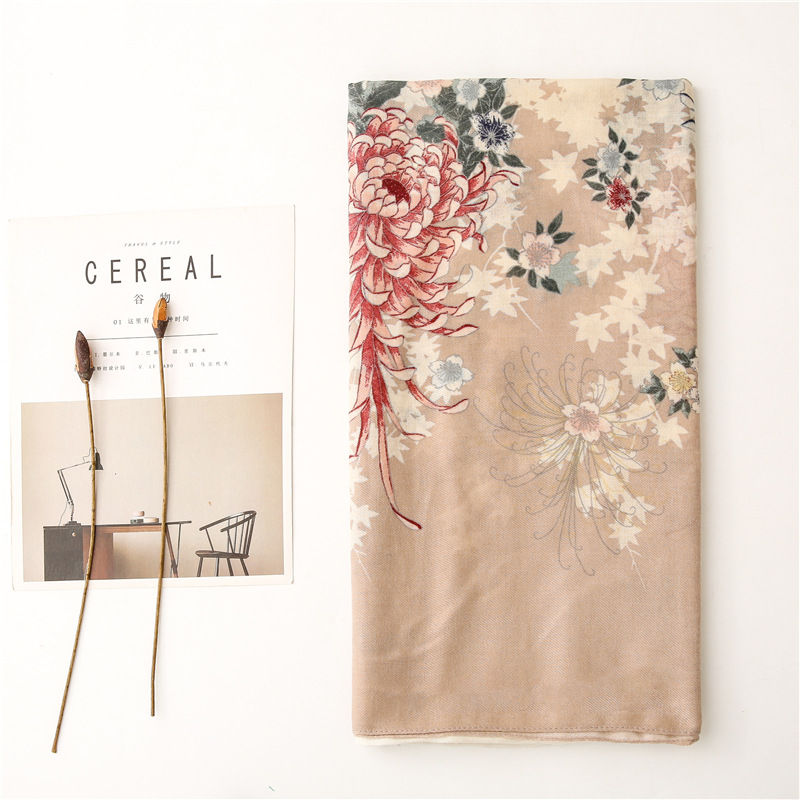 Γυναικείο φουλάρι εσάρπα floral. Φουλάρι σε μπεζ χρώμα με λουλούδια.