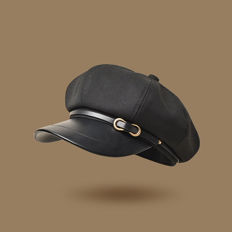 Γυναικείο καπέλο ναυτική τραγιάσκα σε μαύρο χρώμα με μεταλλική λεπτομέρεια.