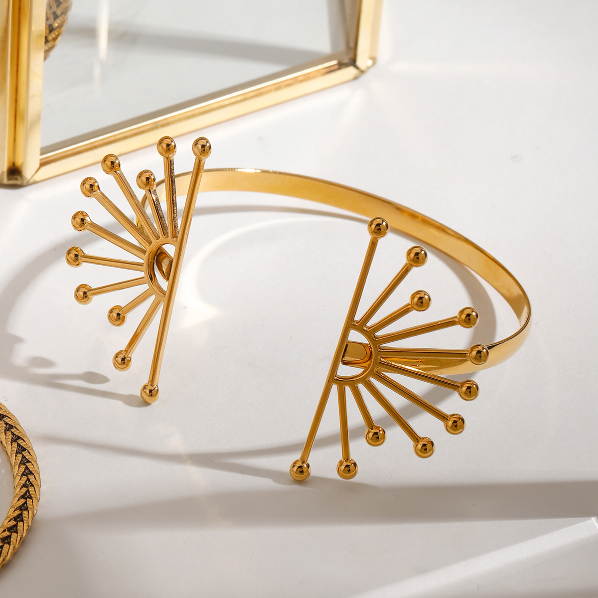 Γυναικείο μεγάλο statement βραχιόλι από ανοξείδωτο ατσάλι, ανοιχτό, προσαρμόσιμο με ακτίνες.