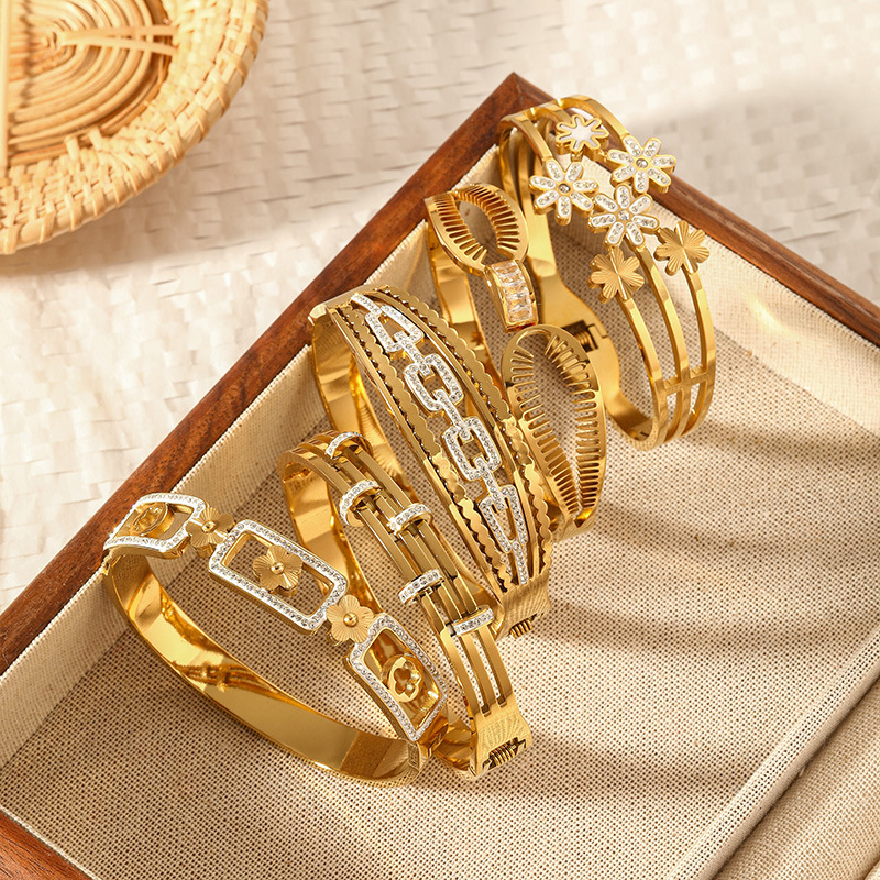 • Γυναικείο Βραχιόλι Χειροπέδα Luxury Gold από Ανοξείδωτο Ατσάλι Επιχρυσωμένο 18Κ με Zircon