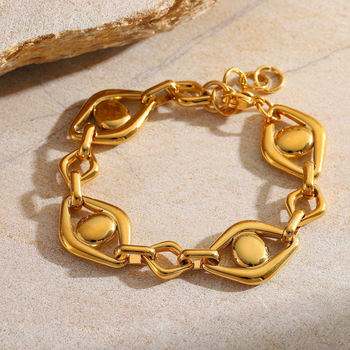 Γυναικείο βραχιόλι Gold Eye από ανοξείδωτο ατσάλι επιχρυσωμένο 18K, βραχιόλι με statement μεγάλη αλυσίδα.