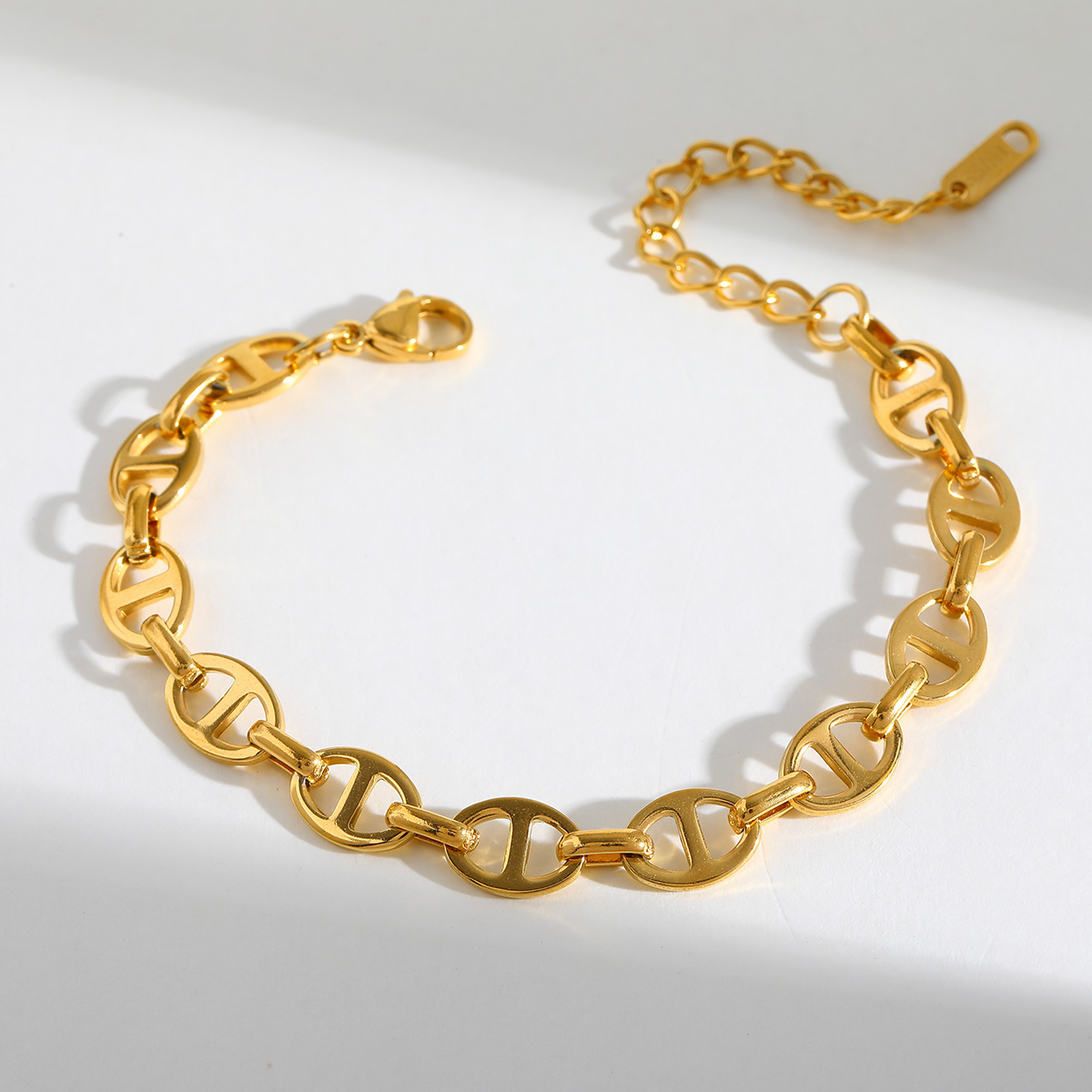 Γυναικείο βραχιόλι Mariner Chain από ανοξείδωτο ατσάλι επιχρυσωμένο 18K, βραχιόλι με flat ναυτική αλυσίδα.