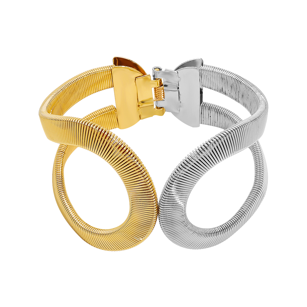 Γυναικείο μεγάλο βραχιόλι σε χρυσό και ασημί χρώμα. Statement μεταλλικό βραχιόλι σε κυκλικό γεωμετρικό σχήμα.