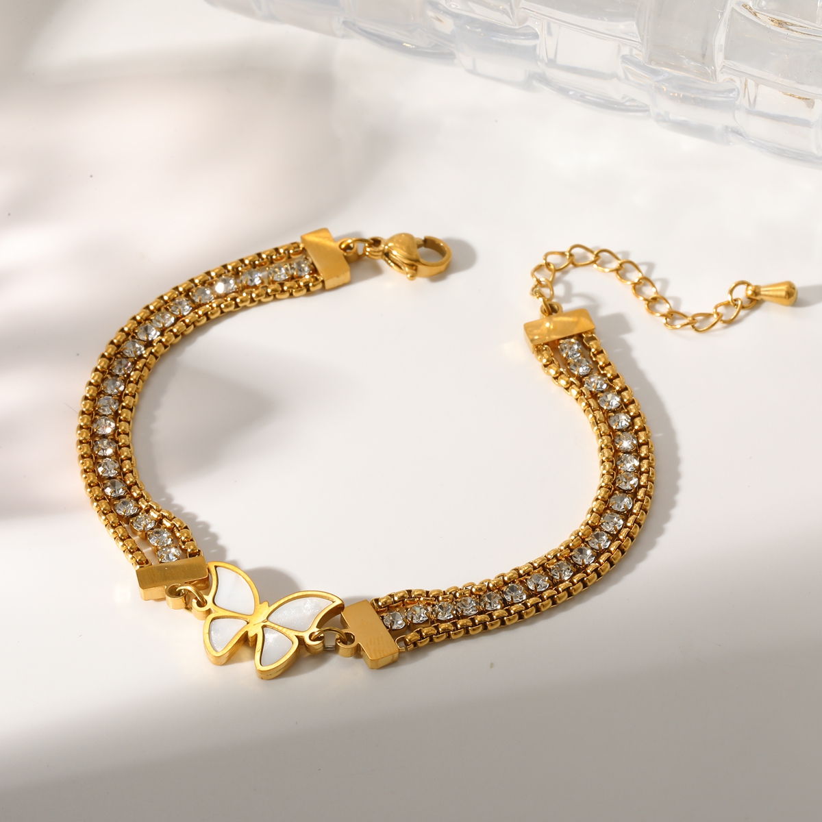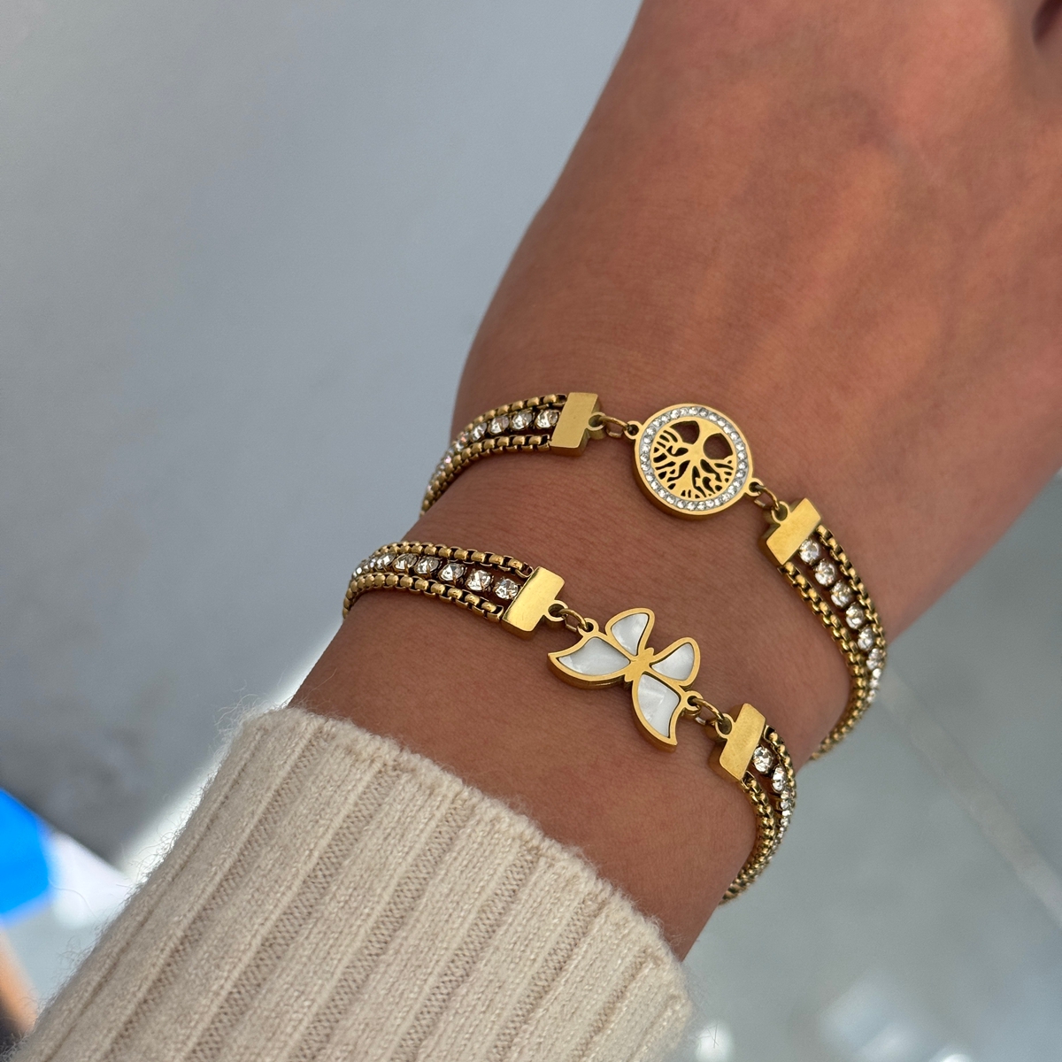 Γυναικείο βραχιόλι White Butterfly από ανοξείδωτο ατσάλι επιχρυσωμένο 18K με Zircon, βραχιόλι με λευκή πεταλούδα και ζιργκόν.