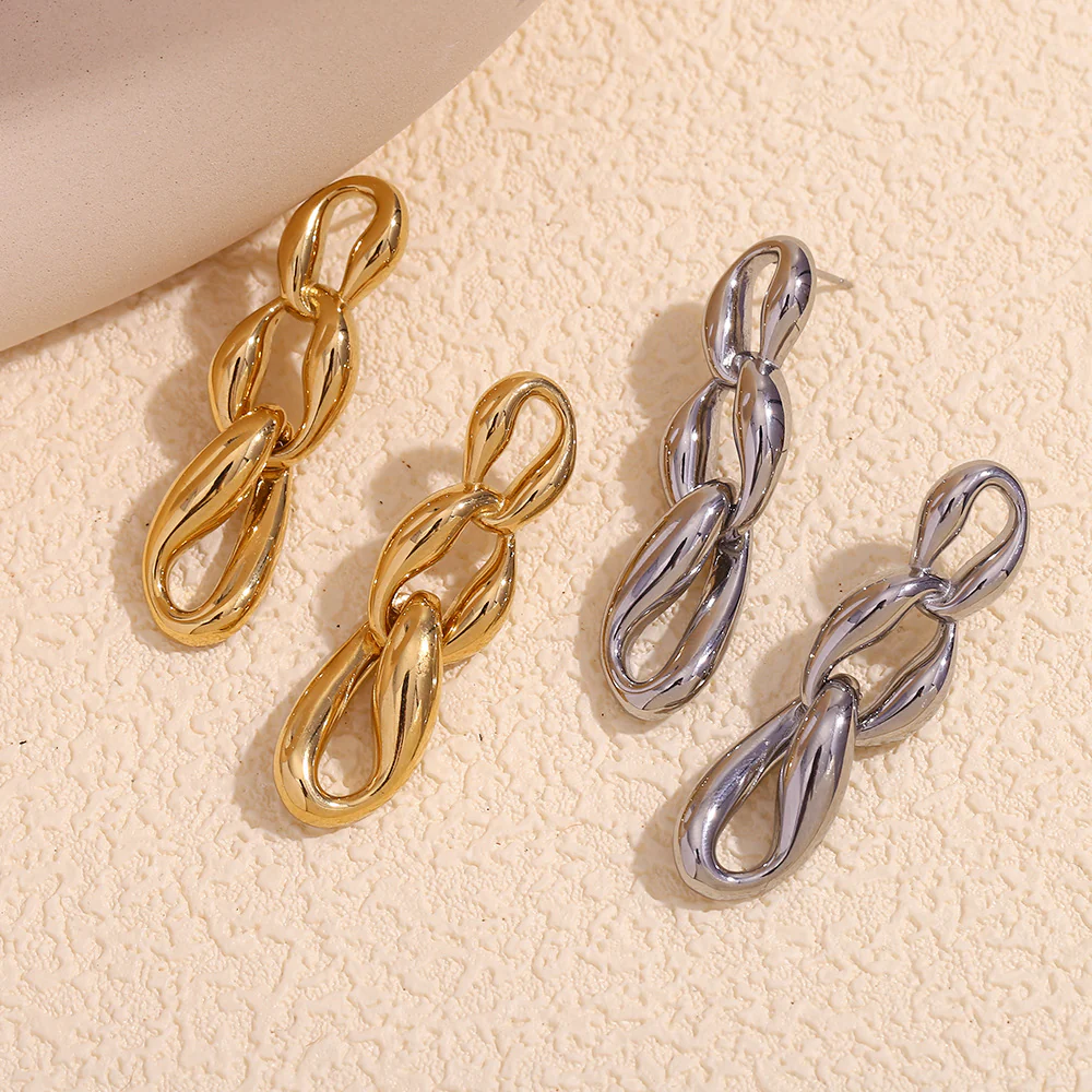 Γυναικεία μεγάλα σκουλαρίκια αλυσίδα από ανοξείδωτο ατσάλι επιχρυσωμένα 18K.