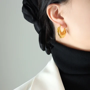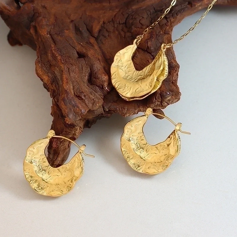 Γυναικεία σκουλαρίκια ανάγλυφα από ατσάλι τιτανίου επιχρυσωμένα.