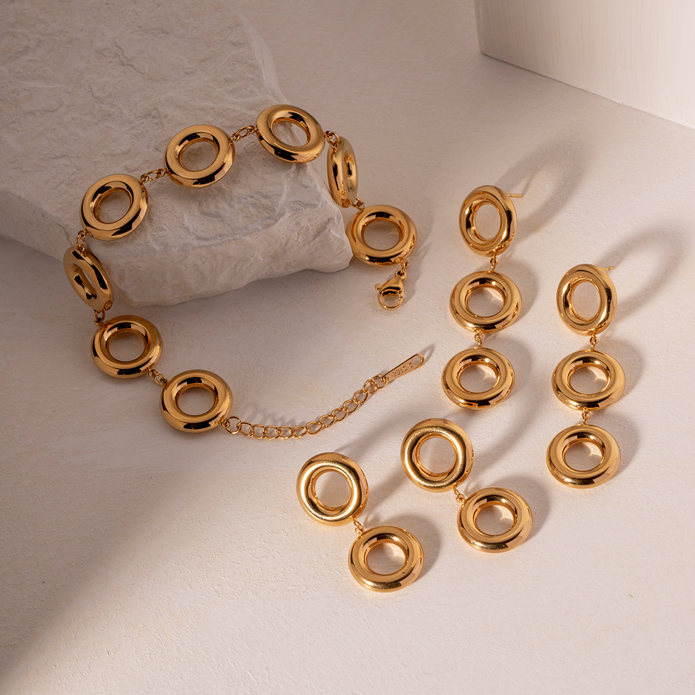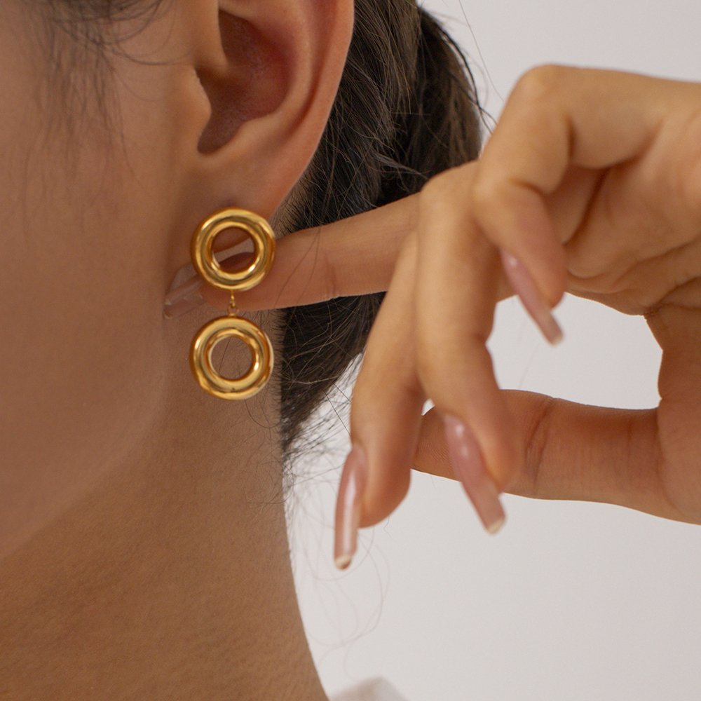 Γυναικεία σκουλαρίκια Circle από ανοξείδωτο ατσάλι επιχρυσωμένα 18K αλυσίδα με κύκλους.