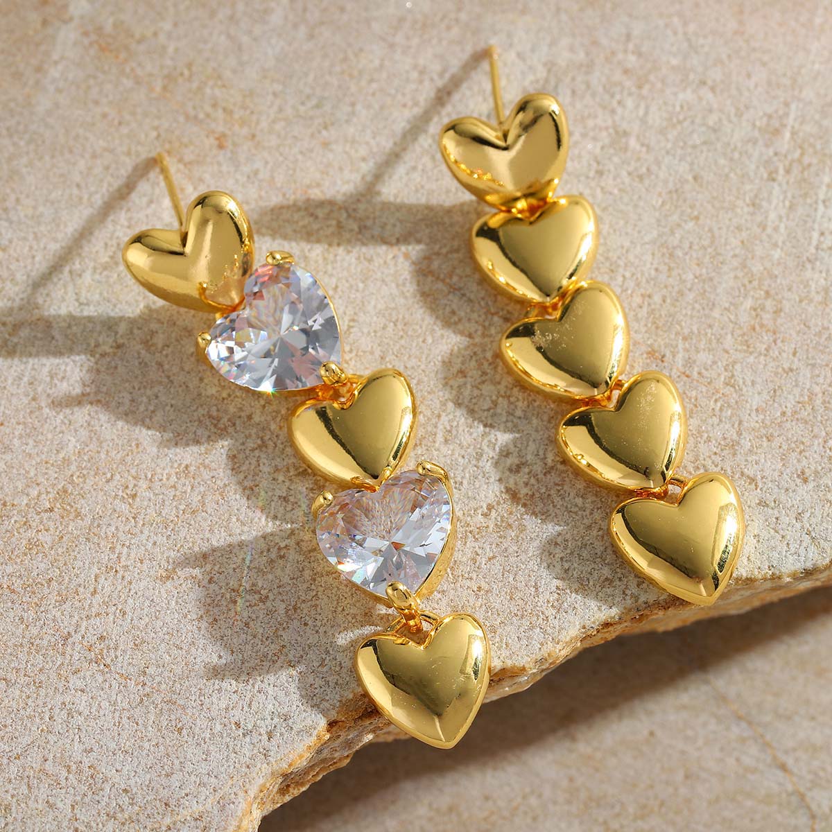 Γυναικεία σκουλαρίκια hearts statement από ανοξείδωτο ατσάλι με zircon μεγάλα με καρδιές.